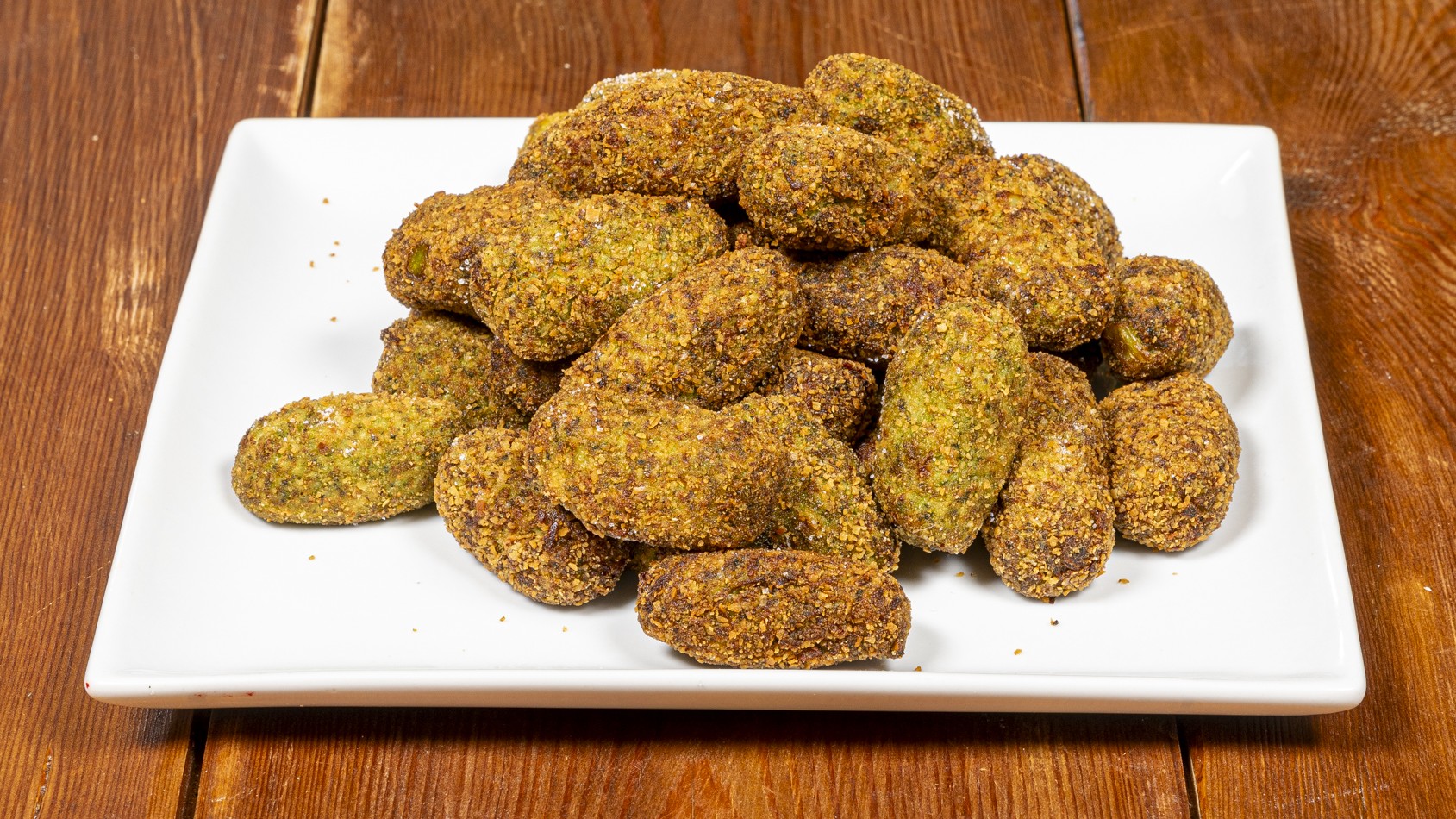 Formate delle polpette allungate del peso di circa 20 g, dopodiché passatele nel pangrattato. Otterrete circa 50 polpette.